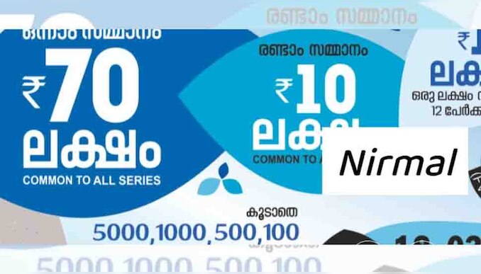 40 രൂപ വിലയുള്ള നിർമൽ ഭാഗ്യക്കുറിയിലൂടെ 70 ലക്ഷം രൂപയാണ് ഒന്നാം സമ്മാനമായി ലഭിക്കുന്നത്. രണ്ടാം സമ്മാനം പത്ത് ലക്ഷവും മൂന്നാം സമ്മാനം ഒരു ലക്ഷം രൂപയുമാണ് ലഭിക്കുന്നത്. ഒരു ലക്ഷം വീതം 12 പേർക്കാണ് മൂന്നാം സമ്മാനം ലഭിക്കുന്നത്. കൂടാതെ സമാശ്വാസ സമ്മാനമായി 8,000 രൂപയും സംസ്ഥാന ഭാഗ്യക്കുറി വകുപ്പ് നൽകുന്നുണ്ട്, 100 രൂപയാണ് ഏറ്റവും കുറഞ്ഞ സമ്മാനം. എല്ലാ വെള്ളിയാഴ്ചയാണ് നിർമൽ ലോട്ടറി നറുക്കെടുപ്പ് സംഘടിപ്പിക്കുന്നത്.