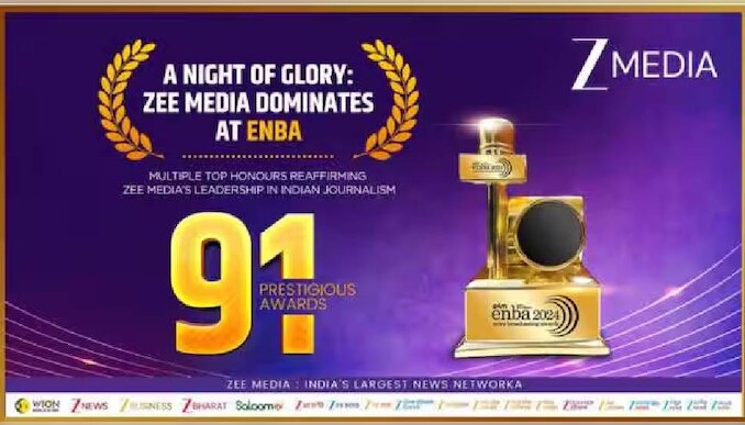 എക്സ്ചേഞ്ച്4മീഡിയ ന്യൂസ് ബ്രോഡ്കാസ്റ്റിംഗ് അവാർഡ്സ് (ENBA) 2024ന്റെ 91 അവാർഡുകൾ സീ മീഡിയയ്ക്ക്. ഇന്ത്യയിലെ ഏറ്റവും വലുതും സ്വാധീനമുള്ളതുമായ വാർത്താ ശൃംഖലകളിൽ ഒന്നെന്ന സ്ഥാനം വീണ്ടും ഉറപ്പിക്കുകയാണ് സീ മീഡിയ. സീ മീഡിയയുടെ വിപുലമായ പോർട്ട്ഫോളിയോയിൽ, സീ ന്യൂസ്, വിയോൺ, സീ ബിസിനസ്, സീ ഭാരത്, സലാം ടിവി, പ്രാദേശിക, ഡിജിറ്റൽ പ്ലാറ്റ്ഫോമുകൾ എന്നിവയ്ക്കാണ് 91 അവാർഡുകൾ ലഭിച്ചത്.