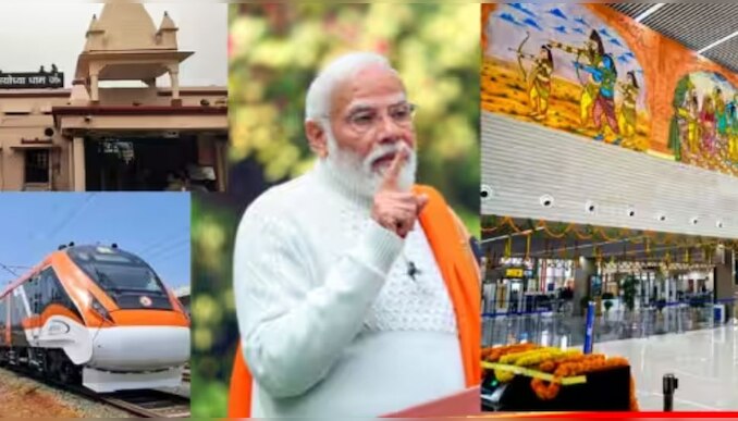 റെയിൽവേ സ്റ്റേഷൻ ഉദ്ഘാടനത്തിന് ശേഷം പ്രധാനമന്ത്രി രണ്ട് പുതിയ അമൃത് ഭാരത് എക്സ്പ്രസ് ട്രെയിനുകളുടെയും ആറ് വന്ദേഭാരത് എക്സ്പ്രസുകളുടെയും ഫ്ളാഗ് ഓഫ് നിർവ്വഹിച്ചു. ഒപ്പം അയോദ്ധ്യയിലേക്ക് പോകാൻ അമൃത് ഭാരത് എക്സ്പ്രസിലിരിക്കുന്ന യാത്രക്കാരോടും പ്രധാനമന്ത്രി സംവദിച്ചു. ഇതിന് ശേഷമാണ് അദ്ദേഹം അയോദ്ധ്യ അന്താരാഷ്ട്ര വിമാനത്താവളത്തിന്റെ ഉദ്ഘാടനം നിർവഹിക്കുക.