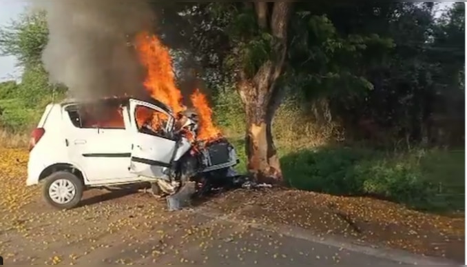 മധ്യപ്രദേശ്: കാർ മരത്തിൽ ഇടിച്ച് നവദമ്പതികളടക്കം 4 പേർ വെന്തുമരിച്ചു. ബുധനാഴ്ച രാവിലെ മധ്യപ്രദേശിലെ ഹാർദ ജില്ലയിൽ ആണ് സംഭവം ഉണ്ടായത്. ഒരു വിവാഹചടങ്ങിൽ പങ്കെടുത്ത് മടങ്ങുകയായിരുന്ന ഒരു കുടുംബത്തിലെ 4 പേരാണ് മരിച്ചത്. ഇതിൽ നവദമ്പതികളും ഉണ്ടായിരുന്നു. റോഡിന്റെ വശത്തുള്ള മരത്തിൽ ഇടിച്ച് കാറിന് തീപിടിക്കുകയായിരുന്നു. സംഭവം അറിഞ്ഞ് പോലീസും ഫയർഫോഴ്സും സ്ഥലത്ത് എത്തുമ്പോഴേക്കും കാറ് പൂർണ്ണമായും കത്തി നശിച്ചിരുന്നു. കാർ കത്തി നശിക്കുന്ന വീഡിയോ സോഷ്യൽ മീഡിയയിൽ വ്യാപകമായി പ്രചരിക്കുന്നുണ്ട്.