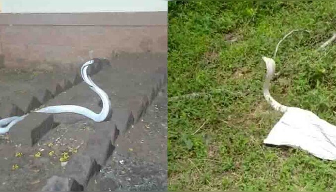 അത്തരത്തിൽ മൂർഖന്റെ ഇനത്തിൽ പെട്ട വെള്ള നിറത്തിലുള്ള പാമ്പുമുണ്ട്. വളരെ അപൂർവ്വയിനം പാമ്പാണ് വെള്ള മൂർഖൻ. ആൽബിനോ കോബ്രയെന്നാണ് ഇംഗ്ലീഷിൽ ഈ ഇനം പാമ്പുകളെ വിളിക്കുക. കഴിഞ്ഞ തമിഴ് നാട്ടിലെ കൊയമ്പത്തൂരിൽ വെള്ള മൂർഖനെ കണ്ടെത്തിയിരുന്നു. കൊയമ്പത്തൂരിലെ ജനവാസ മേഖലയിലാണ് ഈ അപൂർവ്വ ഇനം പാമ്പിനെ കണ്ടെത്തിയത്. തുടർന്ന് പ്രദേശ വാസികൾ സന്നദ്ധ പ്രവർത്തകരെ അറിയിച്ച് പാമ്പിനെ രക്ഷപ്പെടുത്തി വനം വകുപ്പിന് കൈമാറുകയായിരുന്നു.