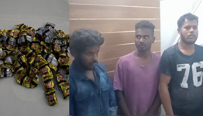 തിരുവനന്തപുരം: മിഠായി രൂപത്തിൽ കടത്തിയ ലഹരി പിടികൂടി. നെടുമങ്ങാട് നിന്നാണ് ലഹരിവസ്തുക്കൾ പിടികൂടിയത്. സംഭവത്തിൽ മൂന്ന് തമിഴ്നാട് സ്വദേശികൾ അറസ്റ്റിൽ. പ്രശാന്ത് (32), ഗണേഷ് (32), മാർഗ ബന്ധു (22) എന്നിവരെയാണ് പിടികൂടിയത്.