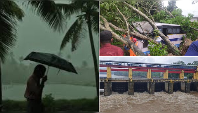 അതിനിടെ ശക്തമായ മഴയിലും കാറ്റിലും കാട്ടാക്കട നക്രാംചിറയ്ക്ക് സമീപം ഓടി കൊണ്ടിരുന്ന കെ എസ് ആർ ടി സി ബസിന് മുകളിലേക്ക് കൂറ്റൻ മരം വീണു. നിരവധി പേർക്ക് പരിക്കേറ്റു. ബസ് കണ്ടക്ടർ അടക്കം 11 ഓളം യാത്രക്കാരെ നെയ്യാറ്റിൻകര ജനറൽ ആശുപത്രിയിലും കാട്ടാക്കട ആശുപത്രിലേക്കും മാറ്റി. കാട്ടാക്കടയിൽ നിന്നും കോട്ടൂരിലേക്ക് പോയ ബസ് ആണ് അപകടത്തിൽ പെട്ടത്. 25 ഓളം പേർ ബസിൽ ഉണ്ടായിരുന്നു.