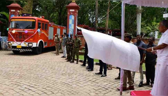 നവീകരണത്തിന്റെ ഭാഗമായി സംസ്ഥാന അഗ്നിരക്ഷാസേന പുതുതായി വാങ്ങിയ 66 വാഹനങ്ങളുടെ ഫ്ളാഗ് ഓഫ് ചൊവ്വാഴ്ച കനകക്കുന്നില് മുഖ്യമന്ത്രി പിണറായി വിജയന് നിര്വഹിച്ചു. ആറ് ഡി.സി.പി (ഡ്രൈ കെമിക്കല് പൗഡര്) ടെന്ഡറുകള്, മൂന്ന് ട്രൂപ്പ് ക്യാരിയറുകള്, 35 ഫസ്റ്റ് റെസ്പോണ്സ് വാഹനങ്ങള്, 12 ഫയര് ടെന്ഡറുകള്, 10 സ്ക്യൂബ വാനുകള് എന്നിവ ഉള്പ്പെട്ടതാണ് പുതിയ വാഹനവ്യൂഹം.
