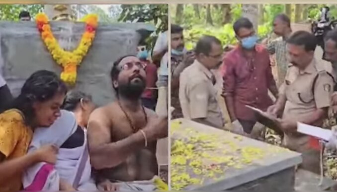 കല്ലറയ്ക്ക് മുന്നിലിരുന്ന് പ്രതിഷേധിച്ച കുടുംബാംഗങ്ങളെ പൊലീസ് ബലം പ്രയോഗിച്ച് മാറ്റി. പൊലീസിനെ കൂടാതെ ഫൊറൻസിക് സംഘവും സ്ഥലത്തെത്തിയിട്ടുണ്ട്. ഇന്നു തന്നെ പോസ്റ്റ്മോർട്ടം നടത്തുമെന്ന് പൊലീസ് പറഞ്ഞു. സബ് കള്കടർ ആൽഫ്രഡിന്റെ സാനിധ്യത്തിലായിരിക്കും സമാധി പൊളിച്ച് പരിശോധിക്കുക.