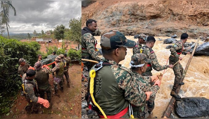 മുണ്ടക്കൈ പുഴയിൽ കുത്തൊഴുക്ക് ശക്തമായി. ജലനിരപ്പ് ഉയർന്നു. സൈന്യം ഇന്നലെ തയ്യാറാക്കിയ താത്കാലിക പാലം മുങ്ങി. നിർത്തിവച്ച ബെയ്ലി പാലത്തിന്റെ നിമാണം വീണ്ടും തുടങ്ങി. വയനാട്ടിൽ ഉരുൾപൊട്ടൽ സാധ്യതയുള്ള പ്രദേശങ്ങളിൽ ജില്ലാ ഭരണകൂടം ജാഗ്രതാ നിർദേശം നൽകി. താത്കാലിക പാലം വഴിയുള്ള രക്ഷാപ്രവർത്തനം വീണ്ടും തുടങ്ങിയിട്ടുണ്ട്.