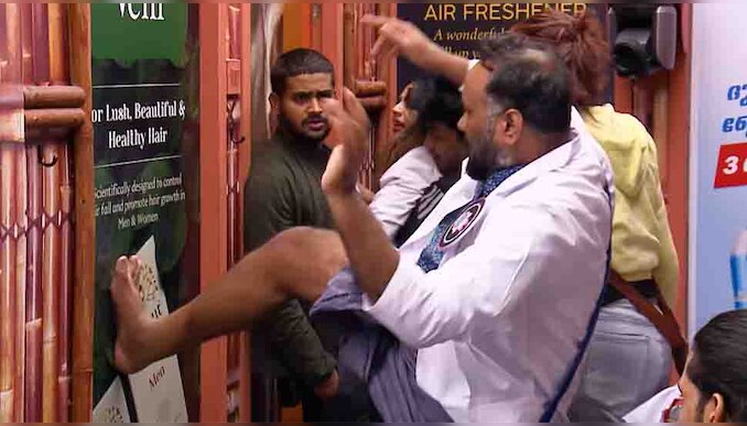 വീക്കിലി ടാസ്ക്കിനിടെയാണ് സംഭവം. ഫ്യൂസുമായി ആൽഫ ടീം അംഗം അഞ്ചുസ് ശുചിമുറിയിലേക്ക് ഓടി കയറുകയായിരുന്നു. ഫ്യൂസ് ഘടിപ്പിക്കാനുള്ള അവസരം കഴിഞ്ഞതിന് ശേഷവും അഞ്ചൂസ് ശുചിമുറിയിൽ തന്നെ തുടരുകയായിരുന്നു. അപ്പോൾ മറ്റ് മത്സരാർഥികൾ അഞ്ചൂസിന്റെ പിറകെ ശുചിമുറിയിലേക്ക് പോകുകയും ചെയ്തു. അഞ്ചൂസിനോട് എതിർ ടീം അംഗങ്ങളായ ശോഭയും ഒമറും ശുചിമുറക്ക് പുറത്തേക്ക് വരാൻ ആവശ്യപ്പെട്ടു. എന്നാൽ അഞ്ചൂസ് പുറത്തേക്ക് വരാതിരുന്നപ്പോൾ ബീറ്റ ടീം ആംഗമായ ഒമർ ലുലു ശുചിമുറിയുടെ വാതിൽ ചവിട്ടി പൊളുക്കുന്നതാണ് ഷോയുടെ ഏറ്റവും പുതിയ പ്രൊമോ വീഡിയോയിൽ കാണാൻ സാധിക്കുന്നത്. ഒമറിന്റെ ആ പ്രവർത്തിയെ ഷോയിലെ മറ്റ് മത്സരാർഥികൾ വിമർശിക്കുന്നതും കാണാൻ സാധിക്കും.