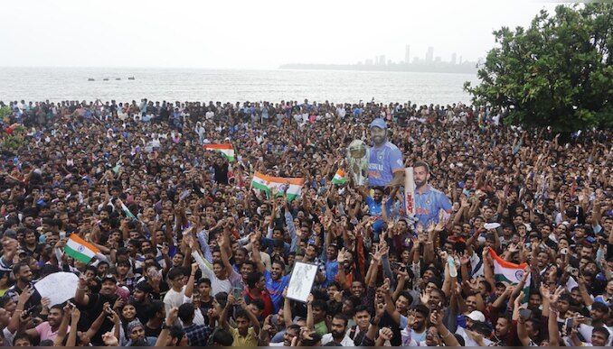 ആരുടേയും നില ഗുരുതരമല്ലെങ്കിലും തലനാരിഴയ്ക്കാണ് വൻ ദുരന്തം ഇല്ലാതായതെന്നാണ് റിപ്പോർട്ട്. ദേഹാസ്വാസ്ഥ്യത്തെ തുടർന്ന് നിരവധി പേർ ആശുപത്രിയിൽ ചികിത്സ തേടി. മറൈന് ഡ്രൈവില് നിന്ന് വാംഖഡെ സ്റ്റേഡിയം വരെ നടത്തിയ വിക്ടറി മാർച്ച് തുറന്ന ബസിലാണ് അംഗങ്ങൾ നടത്തിയത്. ഇതുമായി ബന്ധപ്പെട്ട ഫോട്ടോകളും വീഡിയോകളുമെല്ലാം സോഷ്യൽ മീഡിയയില് വൈറലായി മാറുകയാണ്. സൂചികുത്താന് പോലും ഇടമില്ലാതെ തടിച്ചു കൂടി ആരാധകര്ക്കിടയിലൂടെ ടീം അംഗങ്ങളെ വഹിച്ചുകൊണ്ടുള്ള ബസ് മുന്നോട്ട് പോകാന് പോലും പലപ്പോഴും ബുദ്ധിമുട്ടി.