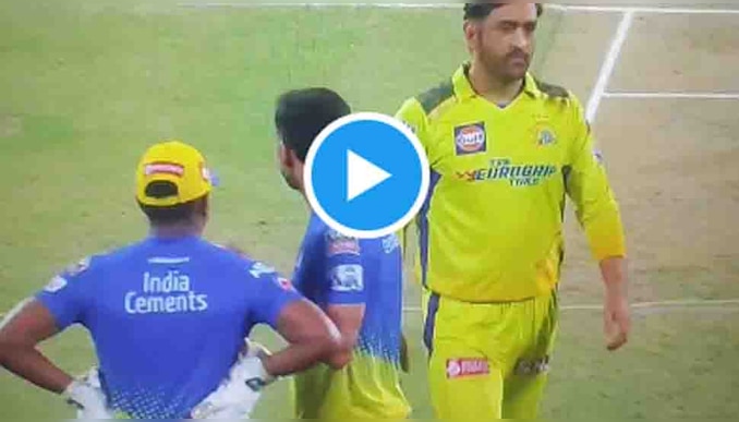 ചഹറും ബ്രാവോയും തമ്മിൽ സംസാരിച്ചുകൊണ്ട് നിൽക്കുകയായിരുന്നു. ഈ സമയം ധോണി ഇരുവരുടെയും അരികിലേക്ക് നടന്ന വരികയാണ്. ചഹറിന്റെ അരികിലേക്ക് ധോണി ഒന്നും അറിയാത്ത ഭാവത്തിൽ എത്തിയപ്പോൾ കൈ കൊണ്ട് അടിക്കുന്നത് പോലെ ഓങ്ങി. ശരിക്കും പറഞ്ഞാൽ ആഞ്ഞ് കൈ കൊണ്ടൊരു വീശായിരുന്നു ധോണി ചെയ്തത്. ഈ സമയം ചഹർ പേടിച്ച് പോകുകയും ചെയ്തു. ഒന്നമറിയാത്തത് പോലെ ധോണി നടന്ന നീങ്ങുന്നതാണ് വീഡിയോയിൽ കാണാൻ സാധിക്കും. വീഡിയോ കാണാം: