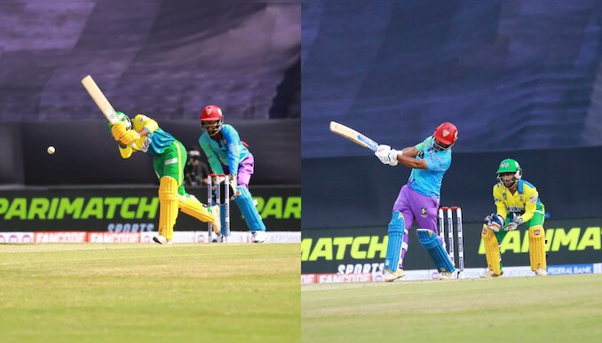ആലപ്പുഴയ്ക്കു വേണ്ടി ആദ്യ ഓവര് എറിഞ്ഞ ഫായിസ് ഫനൂസിന്റെ ആദ്യ പന്തില് തന്നെ തൃശൂരിന്റെ ഓപ്പണര് അഭിഷേക് പ്രതാപിന്റെ വിക്കറ്റ് നഷ്ടമായി. അക്ഷയ് മനോഹറാണ് തൃശൂരിൻ്റെ ടോപ് സ്കോറർ. 44 പന്ത് നേരിട്ട അക്ഷയ് അഞ്ച് സിക്സും ഒരു ബൗണ്ടറിയും ഉള്പ്പെടെ 57 റണ്സ് സ്വന്തമാക്കി. നാല് ഓവറില് 32 റണ്സ് വിട്ടുകൊടുത്ത് ആലപ്പി റിപ്പിള്സിന് വേണ്ടി ആനന്ദ് ജോസഫ് മൂന്നു വിക്കറ്റും മൂന്ന് ഓവറില് 26 റണ്സ് വിട്ടുകൊടുത്ത് ഫാസില് ഫനൂസ് രണ്ട് വിക്കറ്റും നേടി.