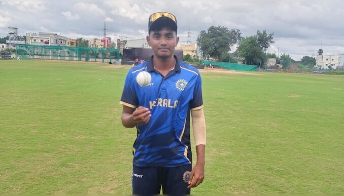 തിരുവനന്തപുരം: അണ്ടർ 19 വിനു മങ്കാദ് ട്രോഫിയിൽ തകര്പ്പൻ പ്രകടനവുമായി കേരളത്തിന്റെ ആദിത്യ ബൈജു. ഉത്തരാഖണ്ഡിനെതിരായ മത്സരത്തിൽ ഏഴ് വിക്കറ്റ് വീഴ്ത്തിയാണ് ആദിത്യ മികച്ച പ്രകടനം പുറത്തെടുത്തത്. ആദ്യ ഓവറിൽ തന്നെ രണ്ട് വിക്കറ്റ് വീഴ്ത്തിയാണ് ആദിത്യ തന്റെ ഉജ്ജ്വല സ്പെല്ലിന് തുടക്കമിട്ടത്. ഉത്തരാഖണ്ഡ് ക്യാപ്റ്റൻ ആരവ് മഹാജനെയും തുടർന്നെത്തിയ ആയുഷ് ദേസ്വാളിനെയും ക്ലീൻ ബൗൾഡാക്കുകയായിരുന്നു.
