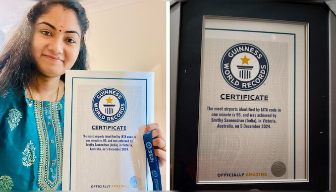 തിരുവനന്തപുരം: ഒരു മിനിറ്റിനുള്ളിൽ ഏറ്റവും കൂടുതൽ എയർപോർട്ട് കോഡുകൾ തിരിച്ചറിഞ്ഞ് ഗിന്നസ് റെക്കോർഡ് നേടി ശ്രുതി ശശീന്ദ്രൻ. അയാട്ട അംഗീകരിച്ച 95 എയർപോർട്ട് കോഡുകൾ തിരിച്ചറിഞ്ഞാണ് ശ്രുതി നേട്ടം സ്വന്തമാക്കിയത്. മുൻപ് ഗിന്നസ് റെക്കോർഡ് അധികൃതരിൽ നിന്ന് മൂന്ന് തിരസ്കരണങ്ങൾ ലഭിച്ചുവെങ്കിലും നിശ്ചയദാർഢ്യത്തോടെ ശ്രുതിയുടെ പരിശ്രമം തുടർന്നുകൊണ്ടേയിരുന്നു.