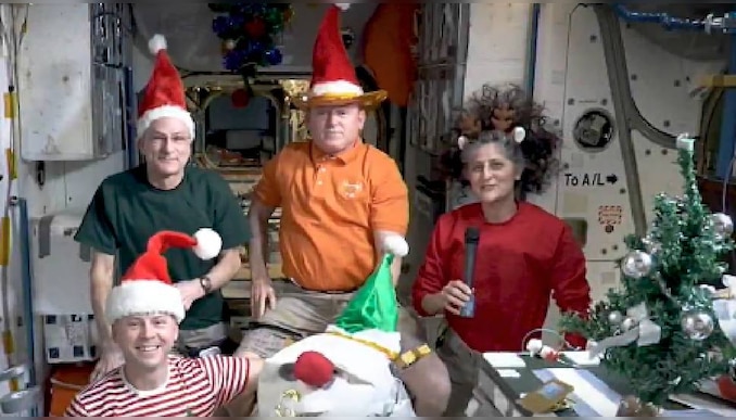 ബഹിരാകാശനിലയത്തിൽ നിന്ന് ക്രിസ്തുമസ് ആശംസകളുമായി നാസയുടെ ഇന്ത്യൻ വംശജയായ ബഹിരാകാശ സഞ്ചാരി സുനിതാ വില്യംസും സംഘവും. ആശംസ പങ്കുവച്ച് സുനിതയും കൂട്ടരും ബഹിരാകാശ നിലയത്തിലെ ക്രിസ്തുമസ് പ്ലാനുകളെക്കുറിച്ചും വിവരിച്ചു. നാസയാണ് വീഡിയോ ഷെയർ ചെയ്തിരിക്കുന്നത്. ബഹിരാകാശത്തെ ക്രിസ്തുമസ് ആഘോഷത്തിന്റെ വീഡിയോ ഇതിനകം കണ്ടത് 2.5 മില്യണിലേറെ പേരാണ്. 'ക്രിസ്തുമസ് ആഘോഷത്തിനായി തങ്ങൾ തയ്യാറാണെന്നും എല്ലാവരെയും അന്താരാഷ്ട്ര ബഹിരാകാശ നിലയത്തിലേക്ക് സ്വാഗതം ചെയ്യുന്നുവെന്നും' സുനിത പറഞ്ഞു.
