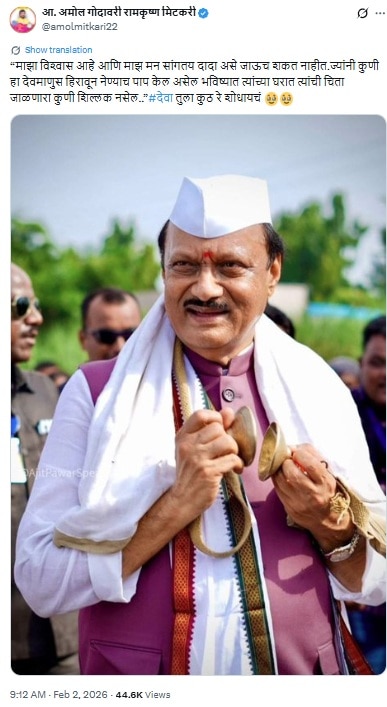 एवढ्यावरच न थांबता मिटकरींनी, "घात जर असेल आणि त्यात कोणी निघाला तर त्याच्या घरी पाळणा हलवणारा कोणी राहणार नाही," अशा शब्दांमध्ये त्यांनी संताप व्यक्त केला. असेच विधान त्यांनी आपल्या अधिकृत एक्स अकाऊंटवरुनही केलं आहे. “माझा विश्वास आहे आणि माझं मन सांगतंय दादा असे जाऊच शकत नाहीत. ज्यांनी कुणी हा देवमाणूस हिरावून नेण्याचं पाप केलं असेल भविष्यात त्यांच्या घरात त्यांची चिता जाळणारा कुणी शिल्लक नसेल,” असं मिटकरींनी म्हटलं आहे. तसेच या पोस्टमध्ये त्यांनी, "देवा तुला कुठ रे शोधायचं?" असंही भावूक होऊ म्हटलं आहे.