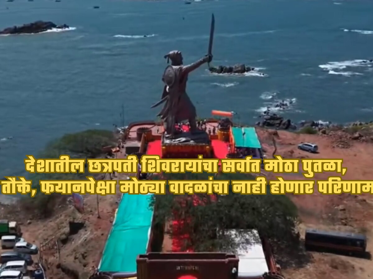 Chhatrapati Shivaji Maharaj statue: मालवणच्या राजकोट किल्ल्यावर छत्रपती शिवाजी महाराजांच्या पूर्णाकृती पुतळ्याचं अनावरण आज मुख्यमंत्र्यांच्या हस्ते करण्यात आलं. मुख्यमंत्री देवेंद्र फडणवीसांच्या हस्ते आधी पुतळ्याचं पूजन करण्यात आलं.. त्यानंतर शिवआरती झाली आणि नंतर महाराजांच्या दिमाखदार पुतळ्याचं अनावरण करण्यात आलं.या कार्यक्रमाला उपमुख्यमंत्री एकनाथ शिंदे, केंद्रीय मंत्री नारायण राणे, बंदर विकास मंत्री नितेश राणे, सार्वजनिक बांधकाम मंत्री शिवेंद्रराजे भोसले तसंच दिपक केसरकरांसह इतर मान्यवर उपस्थित होते..