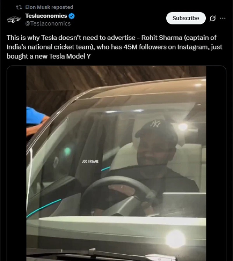 This is why Tesla doesn’t need to advertise - Rohit Sharma (captain of India’s national cricket team), who has 45M followers on Instagram, just bought a new Tesla Model Ypic.twitter.com/m02awSltMR https://t.co/XQSLYyo4XZ