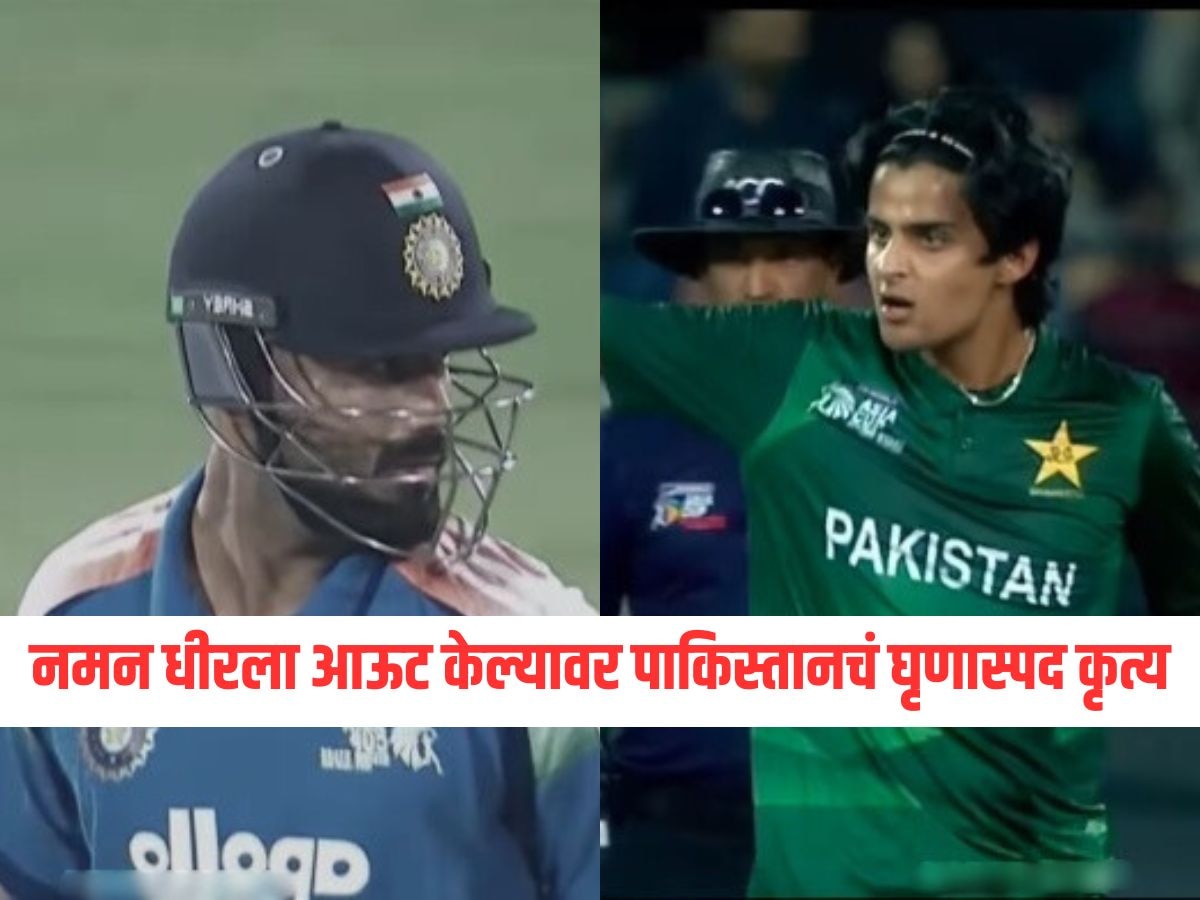IND VS PAK : पुरुष रायजिंग स्टार आशिया कप 2025 मध्ये (Asia Cup 2025) भारत ए विरुद्ध पाकिस्तान ए संघात 16 नोव्हेंबर रोजी सामना खेळवला गेला. या सामन्यात पाकिस्तान ए ने 8 विकेट ने विजय मिळवून टीम इंडियाचा पराभव केला. टीम इंडियाची फलंदाजी सुरु असताना पाकिस्तानच्या गोलंदाजीवर नमन धीरची विकेट घेतली. मात्र त्यानंतर पाकिस्तानच्या खेळाडूने नमन धीर सोबत वाईट वर्तवणूक केली. सध्या याचा व्हिडीओ सोशल मीडियावर व्हायरल होतोय.