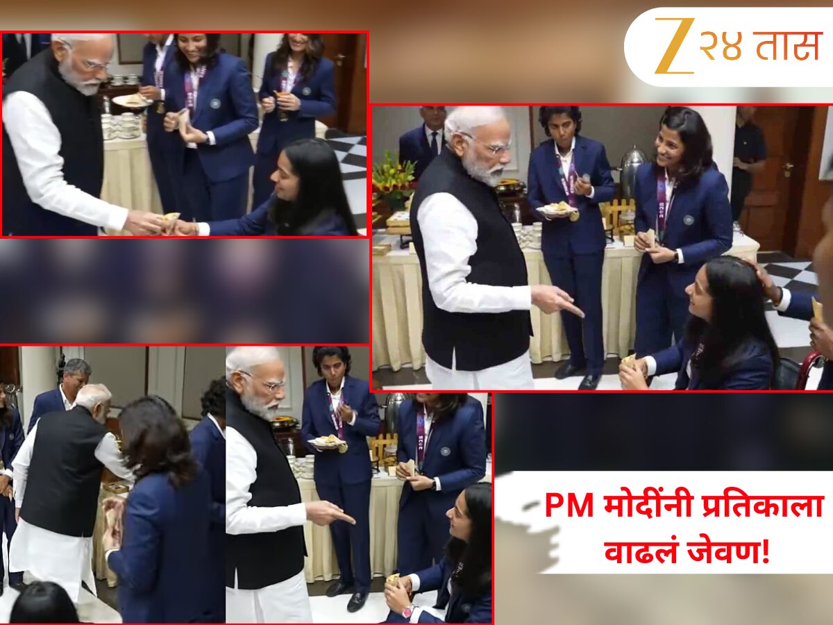 या कार्यक्रमातील सर्वात लक्षवेधी क्षण ठरला तो जखमी प्रतीका रावलसोबत झालेला संवाद. बांगलादेशविरुद्धच्या लीग सामन्यात झालेल्या दुखापतीनंतर प्रतीका रावलला पुढील फेरीत खेळता आले नव्हते. सत्कार कार्यक्रमाला ती व्हीलचेअरवर आणि पायाला ‘मून बूट’ लावून उपस्थित होती. कार्यक्रमात सर्वजण जेवणाचा आनंद घेत असताना मोदींचे लक्ष प्रतीकाकडे गेले. ती बाजूला बसलेली असून कोणी तिला काही सर्व्ह करत नसल्याचे पाहताच पंतप्रधान थेट तिच्याजवळ गेले.