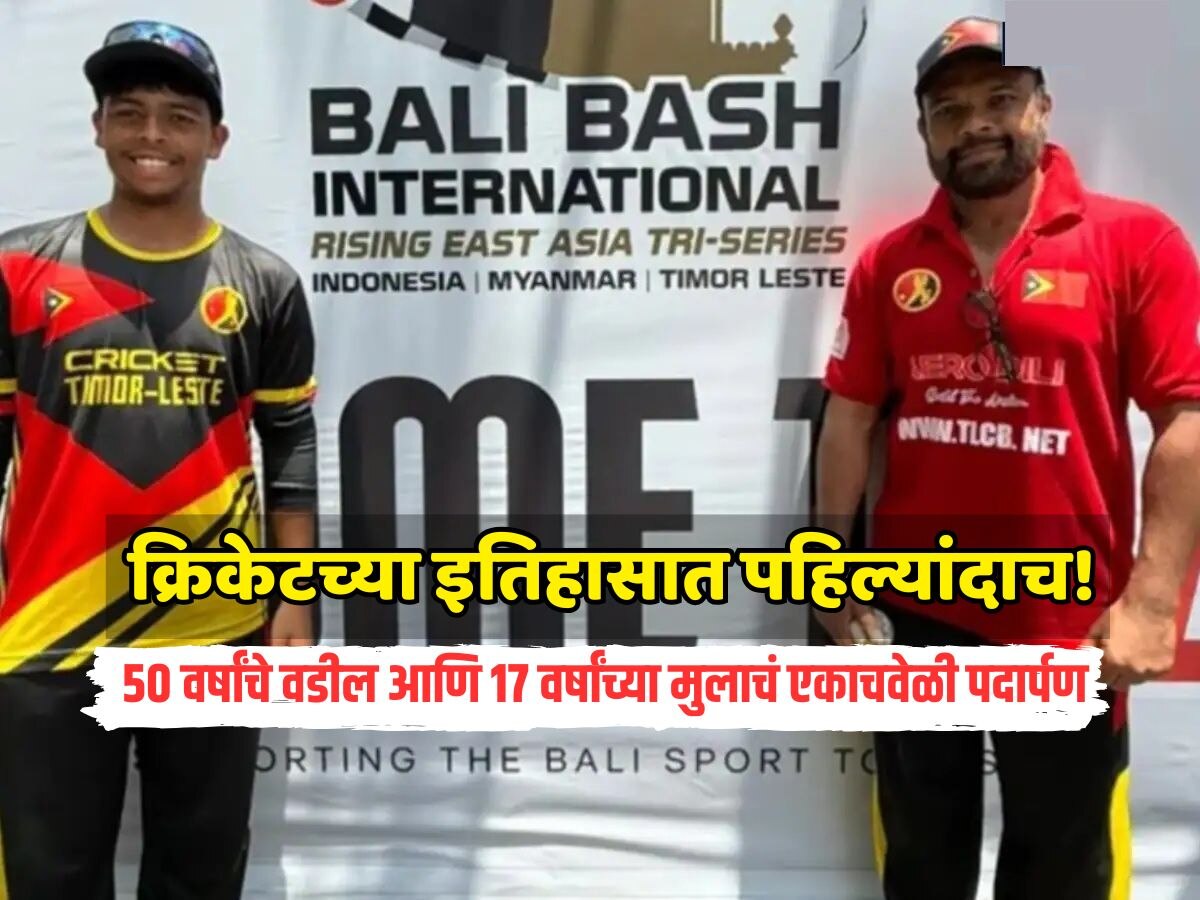 Suhail Sattar And Yahya Suhail : आंतरराष्ट्रीय क्रिकेटमध्ये एका बाप लेकाच्या जोडीने एकत्र आंतरराष्ट्रीय क्रिकेटमध्ये पदार्पण करून इतिहास रचला आहे. आंतरराष्ट्रीय क्रिकेटमध्ये असं पहिल्यांदाच झालं की जेव्हा बाप लेकाच्या जोडीने एकाच सामन्यात आणि एकाच संघाकडून पदार्पण केलं असेल. तिमोर लेस्तेचे 50 वर्षांचे सुहैल सत्तार आणि 17 वर्षांचा मुलगा सुहैल आंतरराष्ट्रीय सामन्यात एकत्र खेळणारी बाप लेकाची एकमेव जोडी बनली आहे. त्यांनी 6 नोव्हेंबर रोजी बालीमध्ये इंडोनेशिया विरुद्ध तिमोर-लेस्तेच्या पहिल्या आंतरराष्ट्रीय सामन्यात ही कामगिरी केली आहे. या सामन्यात दोघांनी एकत्र फलंदाजी सुद्धा केली. या बाप लेकाच्या जोडीचं पदार्पण टी20 ट्राय सीरिजमध्ये झालं.