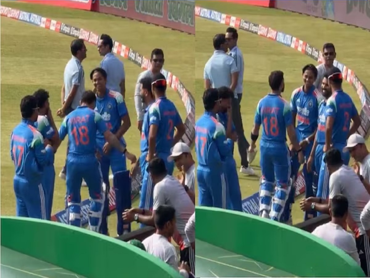 यशस्वी जयस्वाल सध्या त्याचे केस वाढवत आहे. तेव्हा यशस्वीची हेअरस्टाईल बघून विराट कोहली त्याची मजा घेऊ लागला. विराटला यशस्वीला पाहून 'तेरे नाम' मधील सलमान खानचं प्रसिद्ध गाणं 'तुझसे मेरी लगन लगी' ची आठवण झाली आणि तो यशस्वी समोर या गाण्यावर डान्स स्टेप्स करून विराट त्याला चिडवताना दिसला. कोहलीचा हावभाव पाहून तिथे उभे असलेले इतर खेळाडू हसायला लागले आणि त्यांनी यशस्वी जयस्वालची खिल्ली उडवली. सामन्यापूर्वीच्या या विनोदी क्षणाचा व्हिडिओ सोशल मीडियावर वेगाने व्हायरल होत आहे.