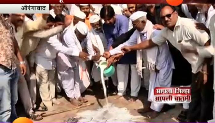 औरंगाबाद । रस्त्यावर दूध टाकून सरकार विरोधात आंदोलन