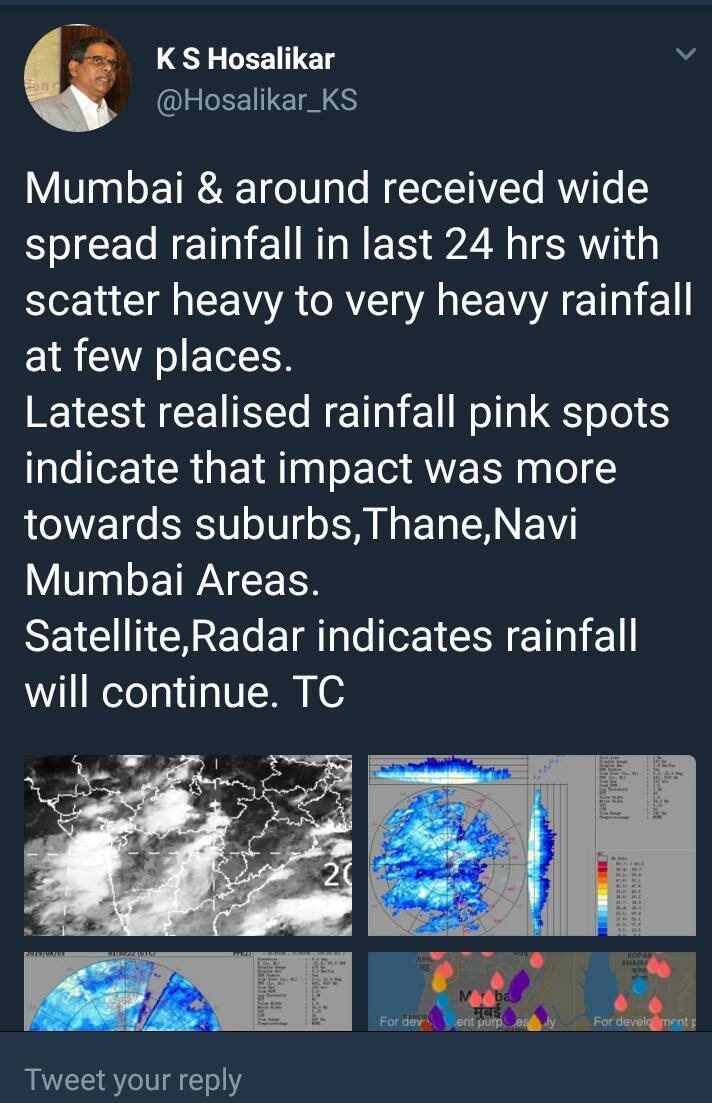 MUMBAI: Mumbaikars woke up to an intense spell of rainfall on Saturday morning once again. The city has been experiencing torrential rainfalls over the last few days, throwing normal life out of gear. The India Meteorological Departement was warned of "heavy to very heavy falls" in Mumbai and its suburbs over the next 24 hours.