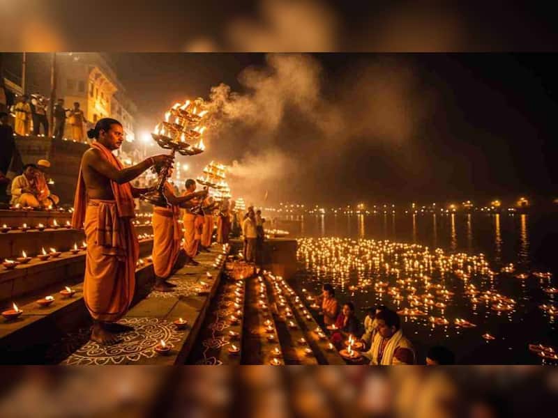 Varanasi glows in divine splendour as millions of diyas, grand Ganga Aartis, and dazzling laser shows illuminate the ghats for Dev Deepawali 2025. Experience the spiritual magic of the Diwali of the Gods with breathtaking visuals and timeless traditions.