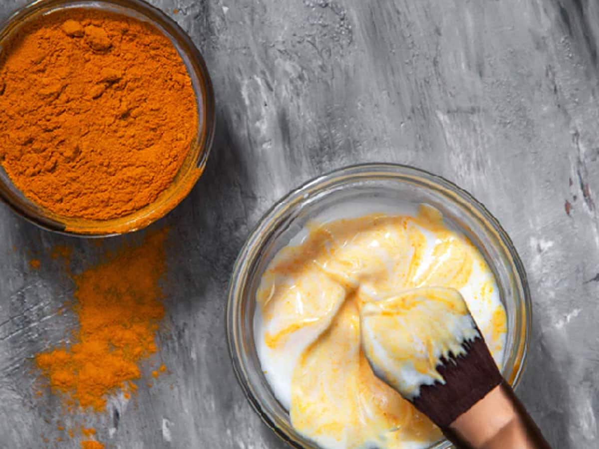 அமினோ அமிலங்கள், வைட்டமின் பி12, தூத்தநாகம் மற்றும் இரும்புச்சத்து கொண்ட இந்த ஃபேஸ் பேக் சரும பாதிப்பை குறைக்க உதவுகிறது. இப்போது இந்த ஃபேஸ் பேக்கை தயாரிக்க முதலில் இரண்டு ஸ்பூன் கடலை மாவு மஞ்சள் மற்றும் தயிர் சேர்த்து நன்கு கலக்கவும். இந்த பேஸ் பேக்கை முகத்தில் தடவி 15 நிமிடங்களுக்குப் பிறகு முகத்தை நன்றாக கழுவவும். இந்த ஃபேஸ் பேக்கை தொடர்ந்து பயன்படுத்தினால் முகம் பொலிவாக மாறும்.