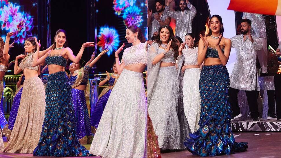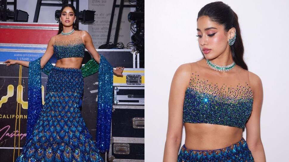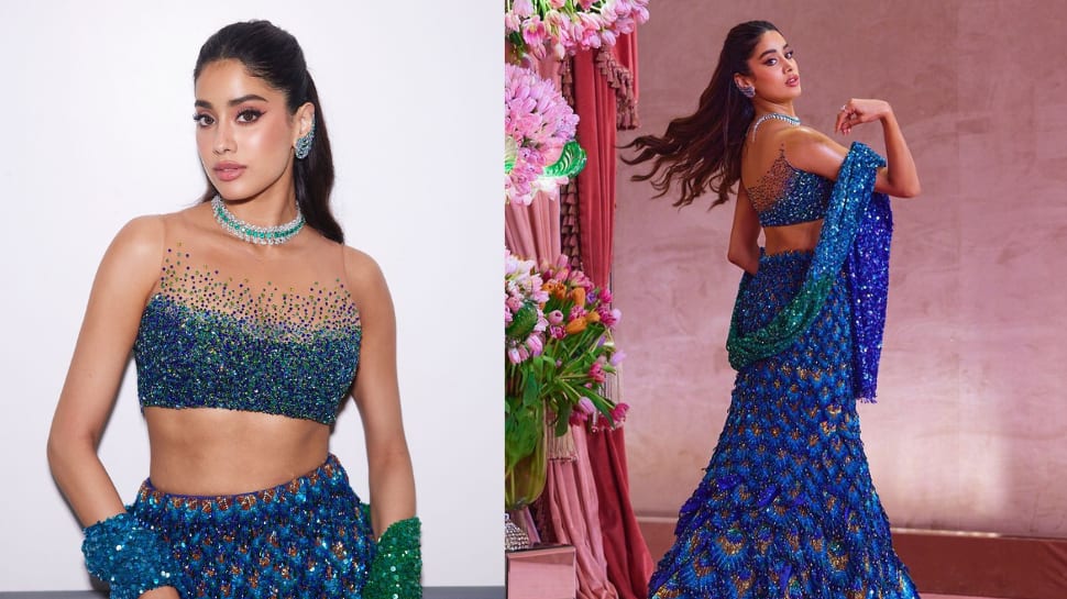 எப்போதுமே ஜான்வி கபூர் காஸ்ட்யூம்களில் தனித்துவம் கொண்டவர் என்றாலும், இந்த சங்கீத் நிகழ்வில் அவர் மயில் தொகை போல் தோற்றம் கொண்ட அடர் நீல நிறத்திலான அந்த ஆடை பார்ப்போரை நிச்சயம் மயங்கி விழச்செய்துவிடும்.