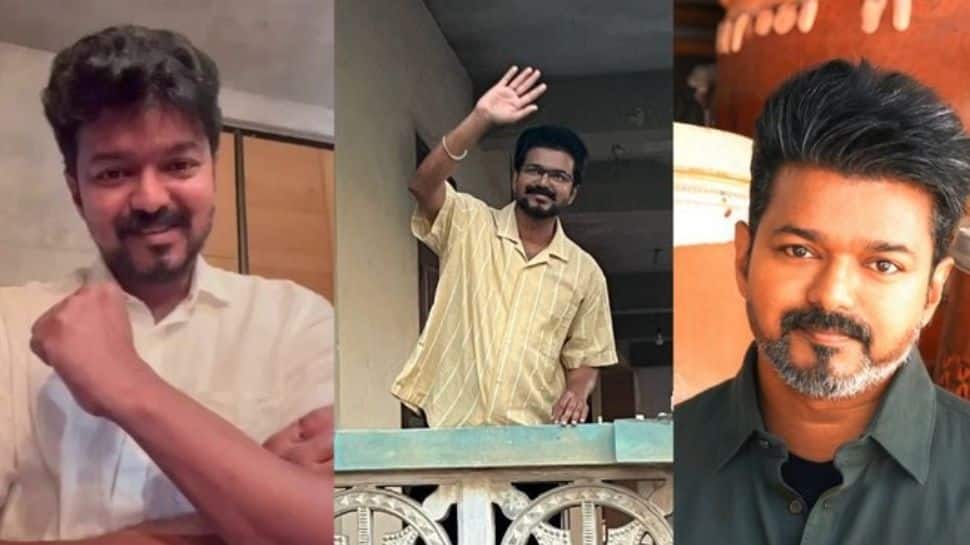 ஒரு லுக்கில், நார்மலாக தாடி மீசையுடன் இருக்கும் விஜய், இன்னொரு லுக்கில் முறுக்கு மீசையுடன் காணப்படுகிறார். இன்னொரு லுக்கில், சால்ட்-அண்ட் பெப்பர் லுக்கில், கொஞ்சம் கருப்பு முடி கொஞ்சம் வெள்ளை முடியுடன் இருக்கிறார். இந்த புகைப்படங்கள் தற்போது இணையத்தில் வைரலாகி வருகிறது.