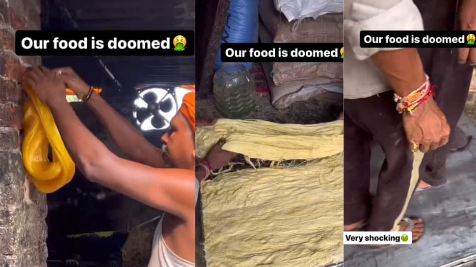 வைரலாகி வரும் அந்த வீடியோவில், சோன் பப்டி தயாரிக்க பயன்படுத்தப்படும் மாவை ஒரே பெரிய கரண்டியில் எடுத்து, பெரிய சட்டியில் போட்டு சூடு செய்கின்றனர். அதில் எண்ணெய் அல்லது நெய் சேர்த்து சட்டியில் சூடுசெய்கின்றனர். மற்றொருவர், கையில் மற்றொரு மாவை எடுத்துக்கொண்டு செங்கல் பூசப்படாமல் இருக்கும் சுவரில் இருக்கும் கம்பியில் அந்த மாவை வைத்து, நல்ல பதத்திற்கு வரும் வரை பிசைகிறார். அந்த பிசைந்த மாவை சட்டியில் உள்ள மாவோடு சேர்க்கின்றனர்.