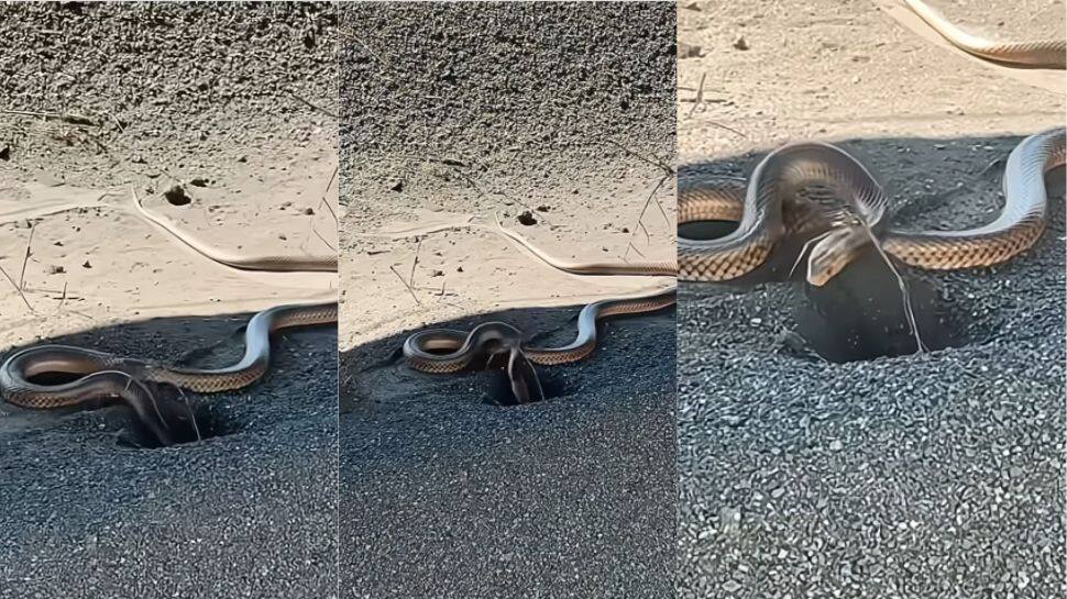 நடுரோட்டில் வீடு கட்டும் பாம்பின் வைரல் வீடியோவை இங்கே காணலாம்: