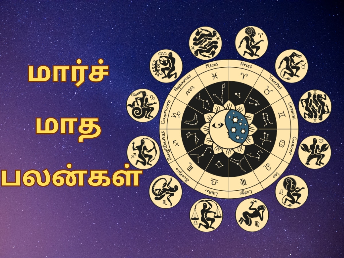 2024 March Monthly Horoscope in Tamil: ஜோதிடத்தில், கிரக நிலைகளையும், கிரகங்களின் ராசி மாற்றங்களையும் வைத்து ராசிகளுக்கான பலன்கள் கணிக்கப்படுகின்றன. இந்நிலையில், மார்ச் மாதத்தில் நான்கு கிரகங்கள் பெயர்ச்சியாகின்றன. மார்ச் மாதம் ஏழாம் தேதி சுக்கிரன் மீனத்தில் சஞ்சரிப்பார். மார்ச் 14ஆம் தேதி சூரியன் மீன ராசிக்கு செல்வார். மார்ச் 15ஆம் தேதி அன்று செவ்வாய் கும்ப ராசிக்கு செல்வார். மார்ச் 18ஆம் தேதி சனி பகவான் உதயம் ஆவார். இதனால் கிரகங்களின் இணைவும் ஏற்படும். இந்த கிரக நிலைகளுக்கு மத்தியில் மார்ச் மாதம், ஆறு ராசிகளுக்கு சிறப்பாக இருக்கும் என்று ஜோதிட வல்லுநர்கள் கணித்துள்ளனர்.