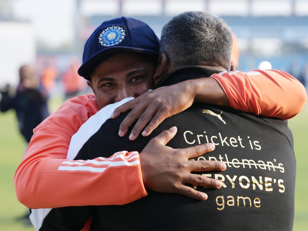 நீண்ட போராட்டத்திற்கும், காத்திருப்பிற்கும் பிறகு சர்ஃபராஸ் கான் இந்திய அணியில் இடம்பெற்றுள்ள நிலையில், அவரது குடும்பத்திற்கும் இது ஒரு பெரிய தருணமாக அமைந்தது. போட்டி நடைபெறும் மைதானத்திற்கு அவரது தந்தை மற்றும் சர்ஃபராஸ் கானின் மனைவி உள்ளிட்டோர் வந்திருந்தனர். அப்போது, சர்ஃபராஸ் கான் இந்திய அணி தொப்பி வாங்கிய பின்னர் குடும்பத்தினர் வாழ்த்து பெற வந்தார்.