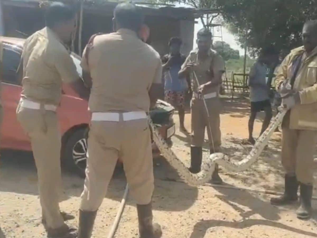 உடனடியாக விரைந்து வந்த தீயணைப்புத் துறையினர் சுமார் 8 அடிநீளம்கொண்ட மலைப் பாம்பை மீட்டு வனப்பகுதியில் விடுவதற்கான நடவடிக்கையில் ஈடுபட்டனர்.