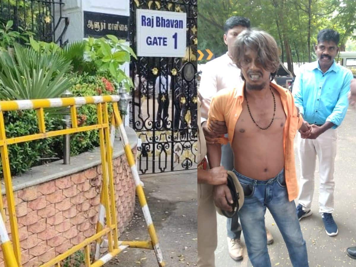 சென்னை கிண்டியில் ராஜ்பவன் ஆளுநர் மாளிகை வழியே இருசக்கர வாகனத்தில் வந்த மர்ம நபர் ஒருவர், திடீரென்று பெட்ரோல் குண்டை ஆளுநர் மாளிகை நுழைவு வாயில் முன்பு வீசிவிட்டு தப்பியோடியுள்ளார். அவர் வீசிய பெட்ரோல் குண்டு வெடித்ததில் அப்பகுதியில் பயங்கர சத்தம் கேட்டுள்ளது. யாருக்கும் பாதிப்பில்லை என்றாலும், ஆளுநர் மாளிகை முன்பே பெட்ரோல் குண்டு வீசியது பெரும் பதட்டத்தை ஏற்படுத்தியது. உடனடியாக ஆளுநர் மாளிகை நுழைவு வாயிலில் பாதுகாப்பு ஈடுபட்ட காவல் துறையினர், இருசக்கர வாகனத்தில் சென்ற அந்த மர்ம நபரை மடக்கி பிடித்தனர்.