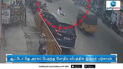 சென்னை வியாசர்பாடியில் ஆட்டோ மீது அரசுப் பேருந்து மோதிய விபத்தில் இருவர் படுகாயமடைந்தனர். விபத்து தொடர்பான சிசிடிவி காட்சி வெளியாகி பரபரப்பை ஏற்படுத்தியுள்ளது.