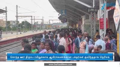 திருவண்ணாமலை அருணாசலேஸ்வரரகோவிலில் புரட்டாசி மாத பௌர்ணமி கிரிவலம் முடித்து தங்கள் ஊர்களுக்கு செல்ல ரயில் நிலையத்தில் ஆயிரக்கணக்கான பக்தர்கள் குவிந்ததால் கூட்ட நெரிசல் ஏற்பட்டது.