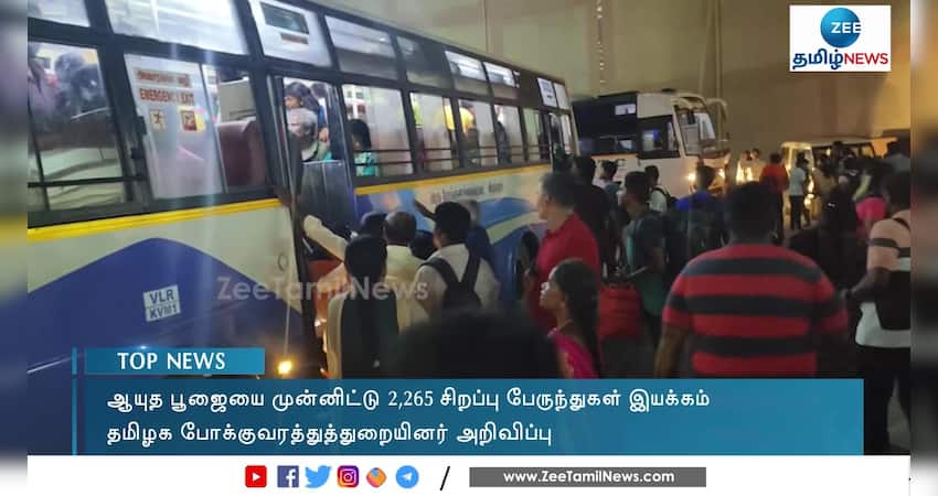 ஆயுத பூஜை பண்டிகை தொடர் விடுமுறையையொட்டி சென்னை, பெங்களூரிலிருந்து 2 ஆயிரத்து 265 சிறப்பு பேருந்துகள் இயக்கப்படுகின்றன.