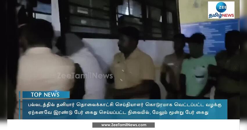 பல்லடத்தில் தனியார் தொலைக்காட்சி செய்தியாளர் கொடூரமாக வெட்டப்பட்ட சம்பவத்தில் இரண்டு பேர் கைது செய்யப்பட்டுள்ள நிலையில், மேலும் இச்சம்பவத்தில் தொடர்புடைய மூன்று பேர் கைது செய்யப்பட்டுள்ளனர்.