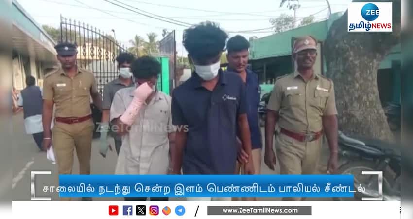 காஞ்சிபுரம் அருகே சாலையில் நடந்து சென்ற இளம் பெண்ணிடம் பாலியல் சீண்டலில் ஈடுபட்ட மூன்று பேரில் இருவரை போலீஸார் கைது செய்தனர்.