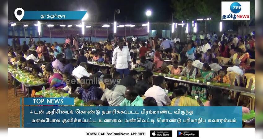 தூத்துக்குடி மாவட்டம் சாத்தான்குளம் அருகே, தேவாலயத்தில் நடைபெற்ற விழாவில் நடைபெற்ற பிரம்மாண்ட விருந்து காண்போரை வியக்க வைத்துள்ளது.