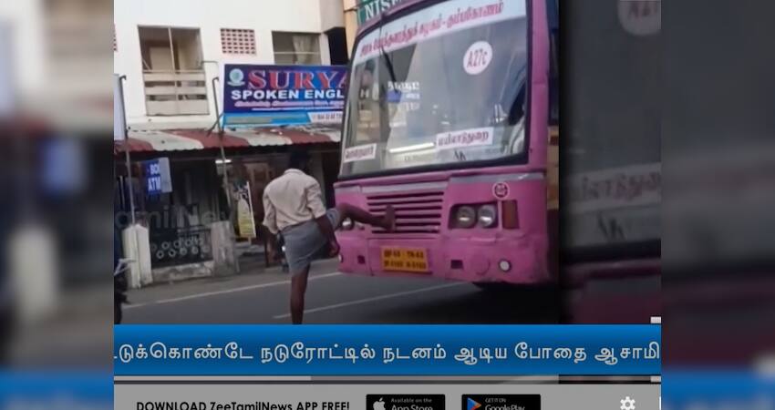 மயிலாடுதுறையில் மதுபோதையில் பேருந்தை நிறுத்திய இளைஞரால் பரபரப்பு ஏற்பட்டது