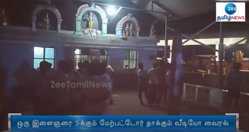 கரூர் அருகே இளைஞர்களுக்குள் ஏற்பட்ட தகராறில் ஒரு இளைஞரை 5-க்கும் மேற்பட்ட இளைஞர்கள் சேர்ந்து தாக்கும் வீடியோ பதிவுவெளியாகி பரபரப்பை ஏற்படுத்தியுள்ளது.