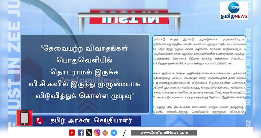 விசிகவில் இருந்து தன்னை முழுமையாக விடுவித்துக் கொள்வதாக ஆதவ் அர்ஜூனா திருமாவளவனுக்கு கடிதம் ; ஜனநாயகம், சமத்துவம், சமநீதி என்ற அடிப்படையில் அரசியல் பயணம் தொடரும் என அறிவிப்பு.