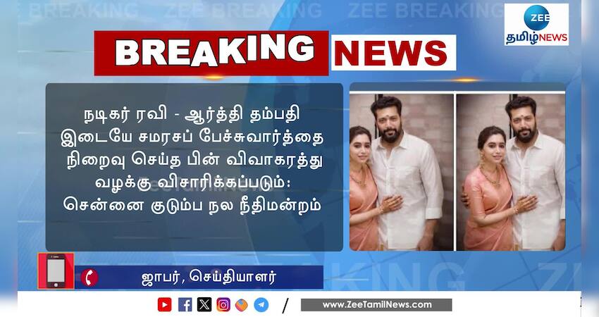 நடிகர் ரவி - ஆர்த்தி தம்பதி இடையே சமரசப் பேச்சுவார்த்தை நிறைவு செய்த பின் விவாகரத்து வழக்கு விசாரிக்கப்படும்: சென்னை குடும்ப நல நீதிமன்றம்