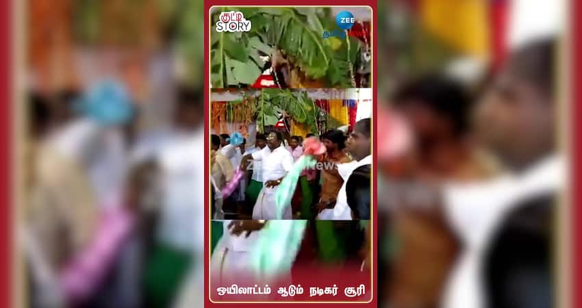 நடிகர் சூரி கோயிலில் ஒயிலாட்டம் ஆடும் வீடியோ வெளியாகி வைரலாகியுள்ளது.