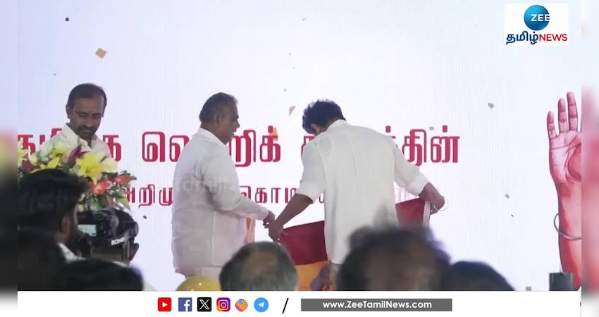 தமிழக வெற்றிக் கழகத்தின் கொடியை அறிமுகப்படுத்திய நடிகர் விஜய், இந்தக் கொடிதான் தமிழ்நாட்டின் வருங்காலத்துக்கான கொடி என அறிவித்துள்ளார்.