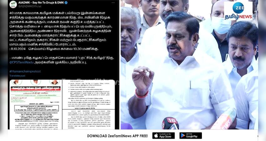 அதிமுக சார்பில் அக்.8ஆம் தேதி மனிதச் சங்கிலிப் போராட்டம்