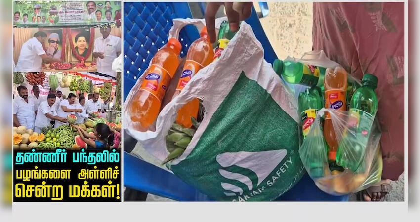 சென்னையில் அதிமுக பழங்கள் இலவசமாக வழங்கியதால் மக்கள் கூட்டம் அலைமோதியது